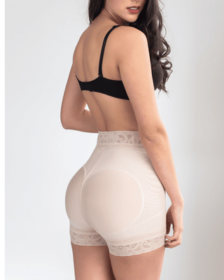 Faja Short de Compresión con Cintura Alta y Encaje - Levanta Glúteos y Control de Abdomen